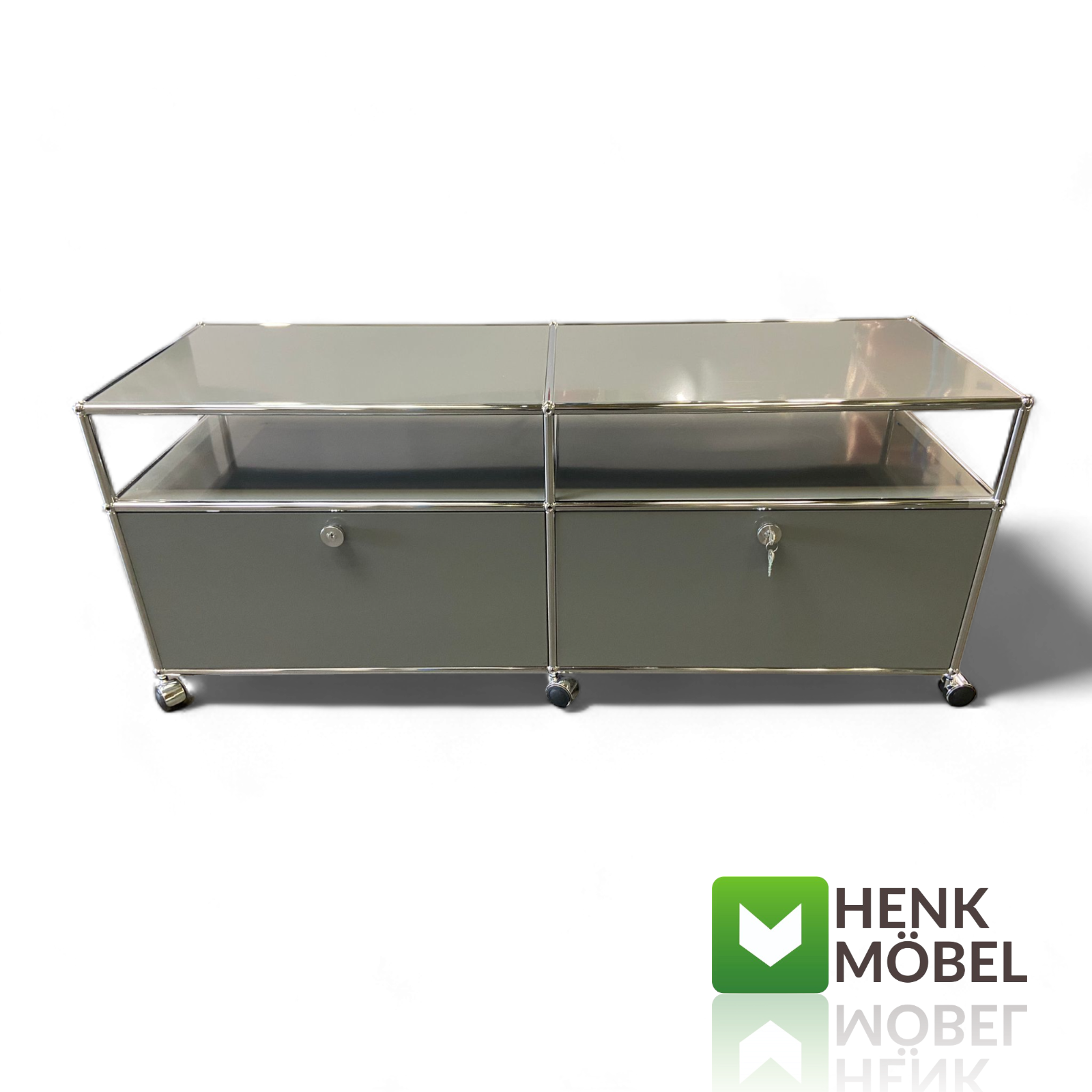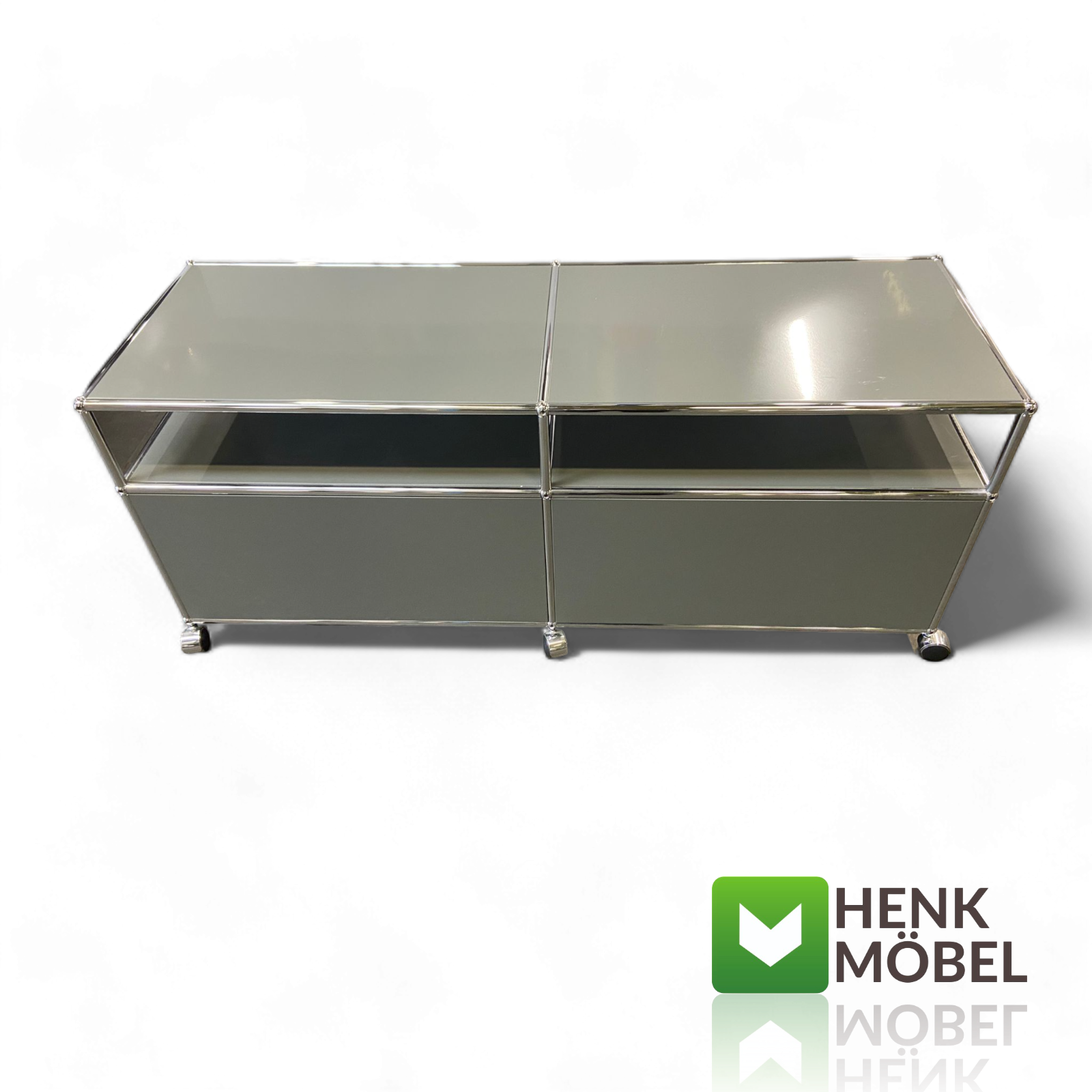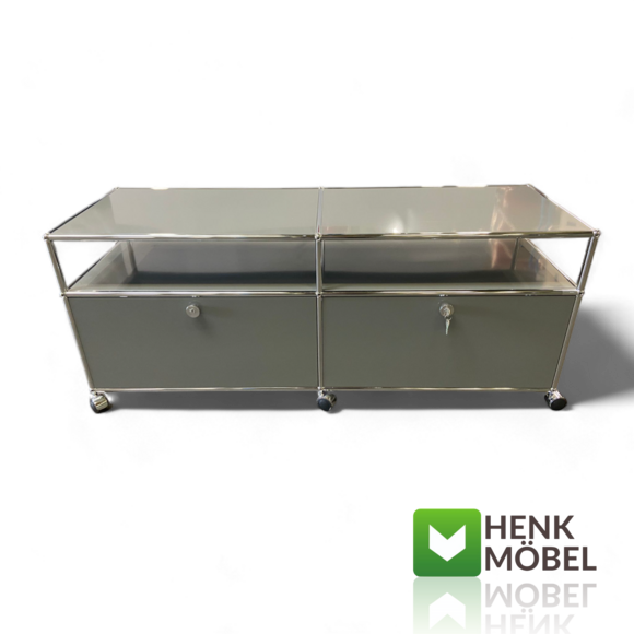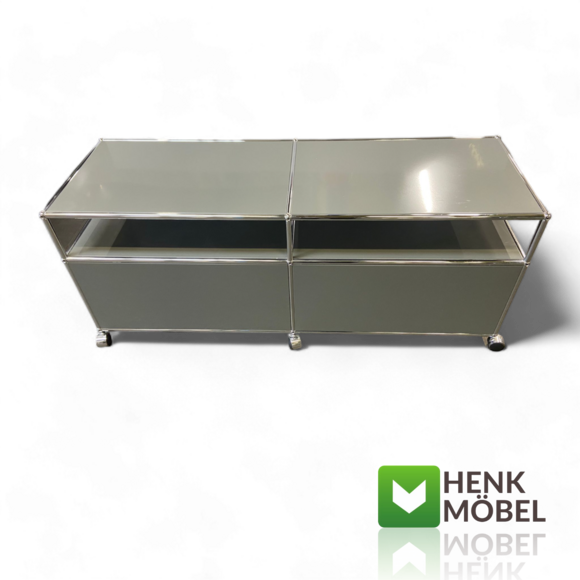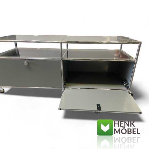 USM Haller TV-Sideboard – Zeitloses Design für moderne Wohnkultur Dieses TV-Sideboard aus der ikonischen USM Haller Linie überzeugt durch klare Linien, hochwertige Materialien und funktionale Raffinesse. Die zwei verschließbaren Klappenfächer bieten praktischen Stauraum für Technik, Medienzubehör oder persönliche Gegenstände – dezent versteckt, aber jederzeit griffbereit. Auf Rollen gelagert, bleibt das Möbel flexibel und lässt sich ganz einfach an veränderte Wohnsituationen anpassen. Ob im Wohnzimmer, Loft oder Büro: Dieses Möbelstück ist mehr als nur funktional