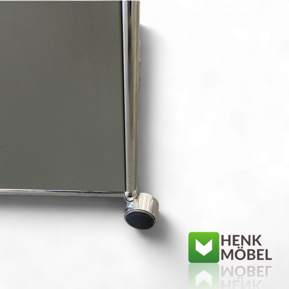 Die klassische Stahlrohrstruktur in Kombination mit eleganten Metalloberflächen sorgt für ein modernes, aber unaufdringliches Design, das sich mühelos in jedes Wohnambiente integriert. Auf Rollen gelagert, bleibt das Möbelstück flexibel und mobil – ganz nach Ihrem Bedarf.