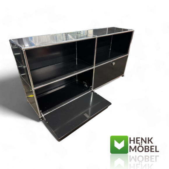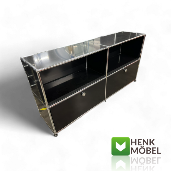 Das tiefschwarze Sideboard kombiniert offene und geschlossene Fächer für maximale Flexibilität und stilvolle Ordnung. Es überzeugt durch edles Design, modulare Vielseitigkeit und hochwertige Materialien – ideal für Büro, Empfang oder Wohnbereich. Ein funktionales Möbelstück mit klarer Designaussage.