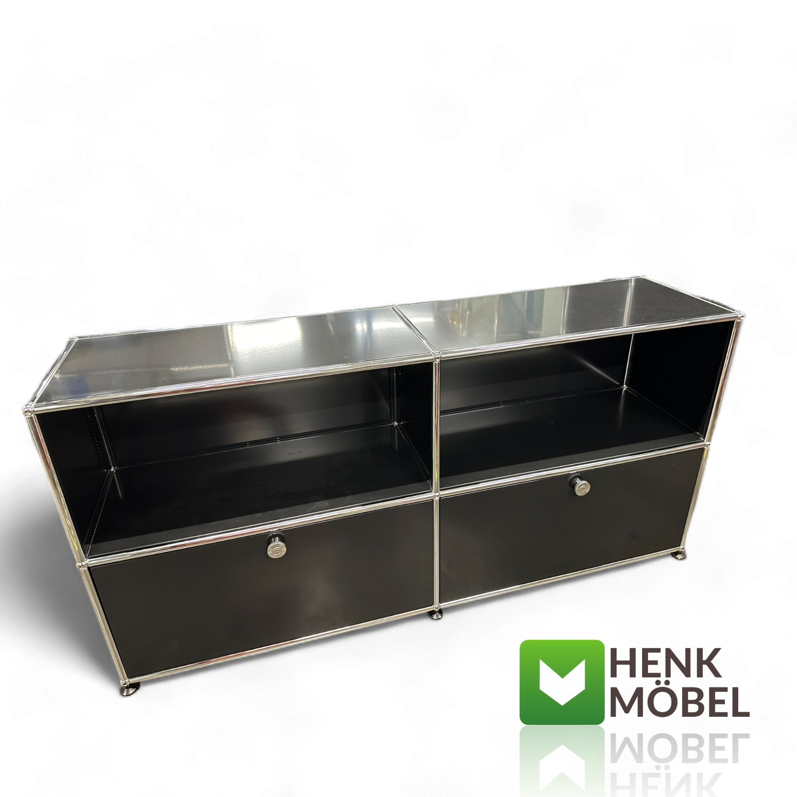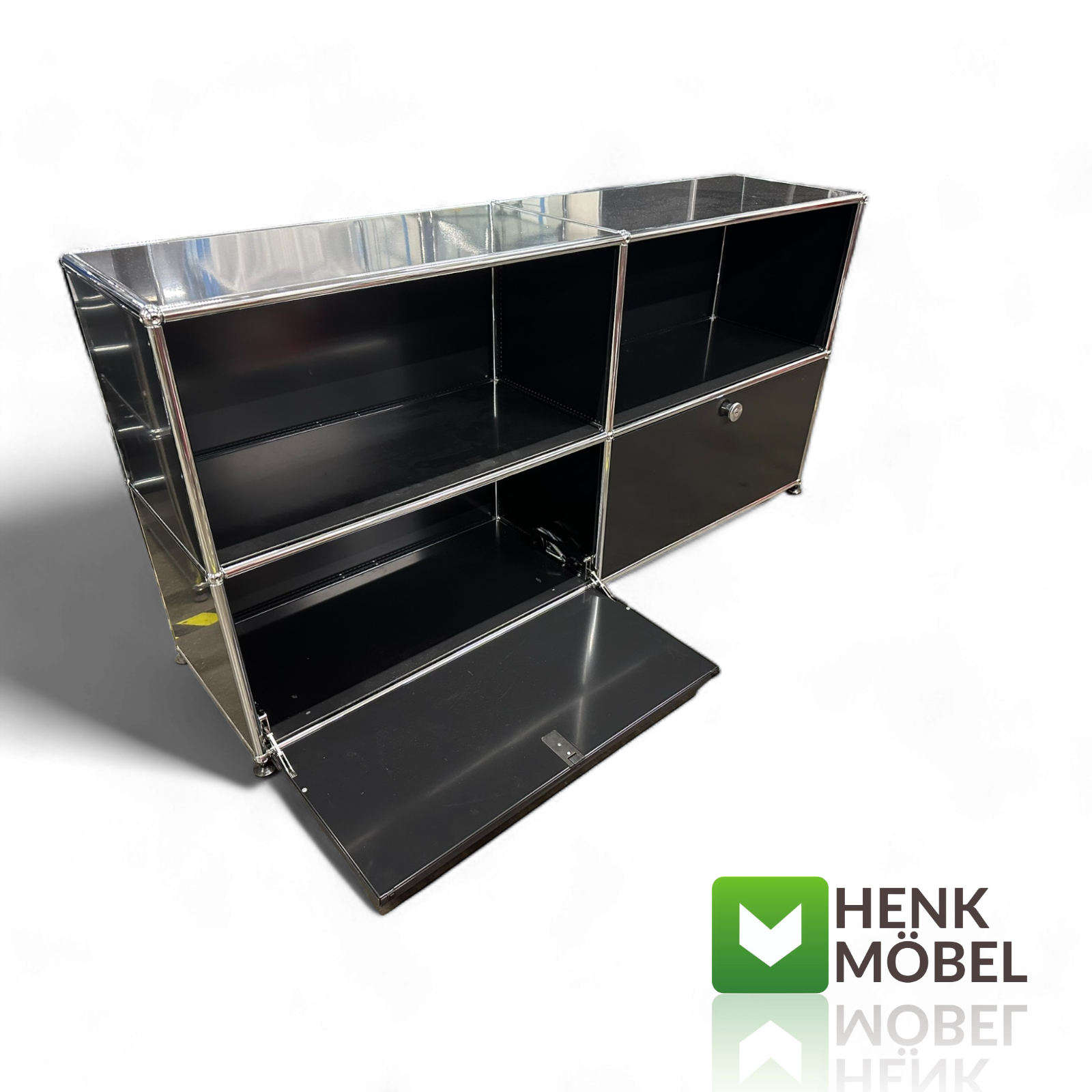 Ob als Nachttisch, Beistellmöbel oder stilvolle Ablage – das USM Haller Modul passt sich deinem Raum und deinem Stil perfekt an.